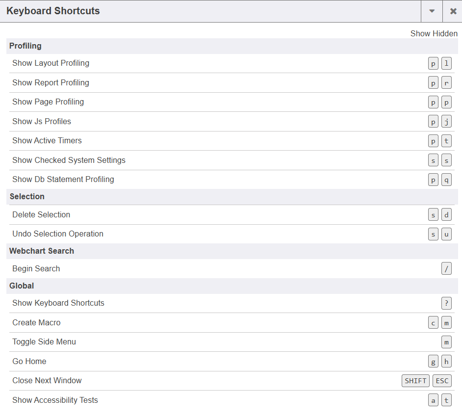 1. The Keyboard icon displays a list of Keyboard shortcuts.