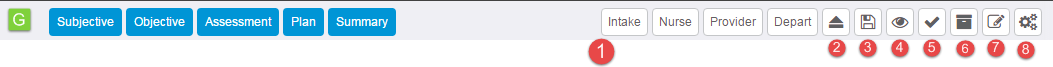 5. Note complete button: Used for taking a note on a patient; saves and closes the note.